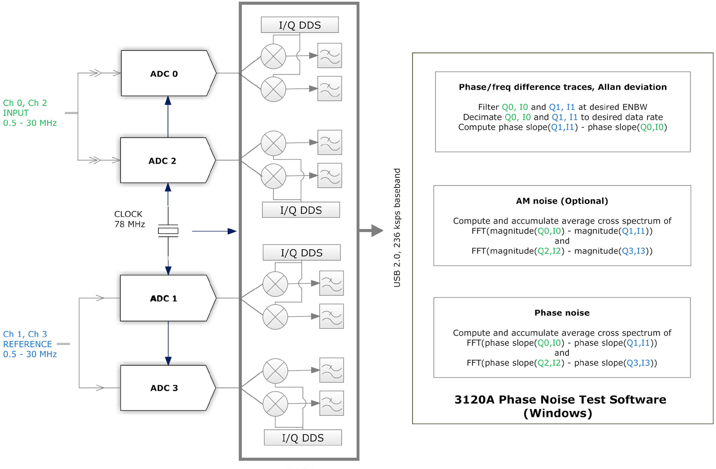 Microsemi(并购了Symmetricom公司)公司开发了直接数字相位噪声测量技术,这项技术已经扩展到一个测试探头。精确的相噪和阿伦方差测量成本显著降低。Microsemi(并购了Symmetricom公司)的3120A是一款高性能的测试探头,可以测量射频源端口和双端口设备的振幅、相位和频率的稳定(频率:0.5MHz—30MHz)。