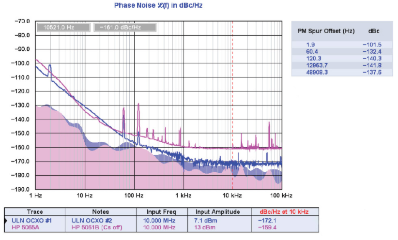 - PM噪声的互相关测试偏移量为:1Hz-100kHz