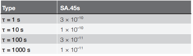 - SA.45s 输出标准的CMOS电平10MHz 及 1PPS 信号,短期稳定度(阿伦方差):2.5E-10@1s,老化率3E-10/月,温度特性5E-10(-10℃ ~ +70℃),另可选择宽温的产品(-40℃ ~ +85℃)。