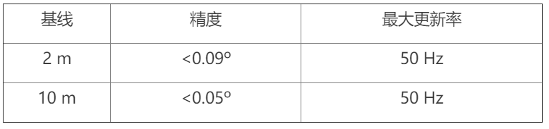 - 高精度定向,2m基线<0.09度、10米基线<0.05度